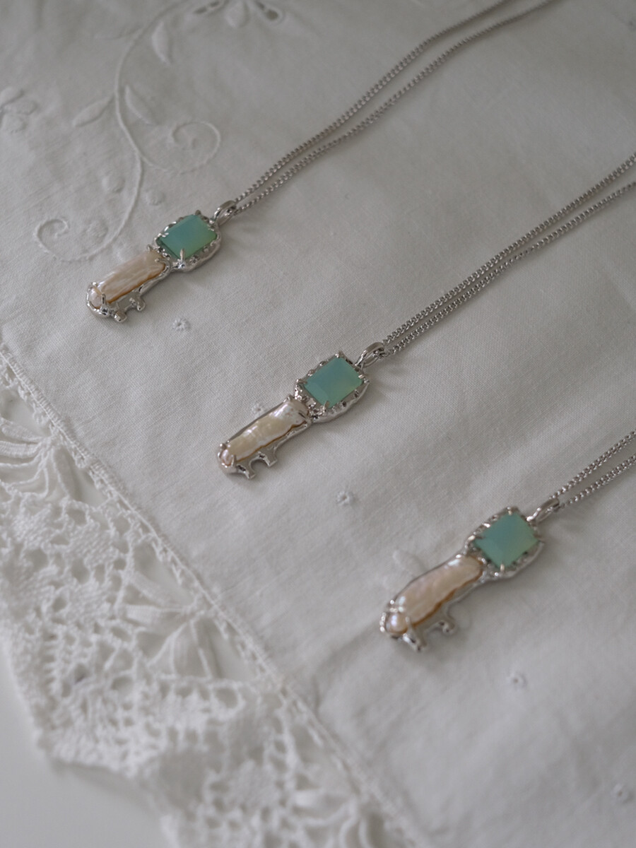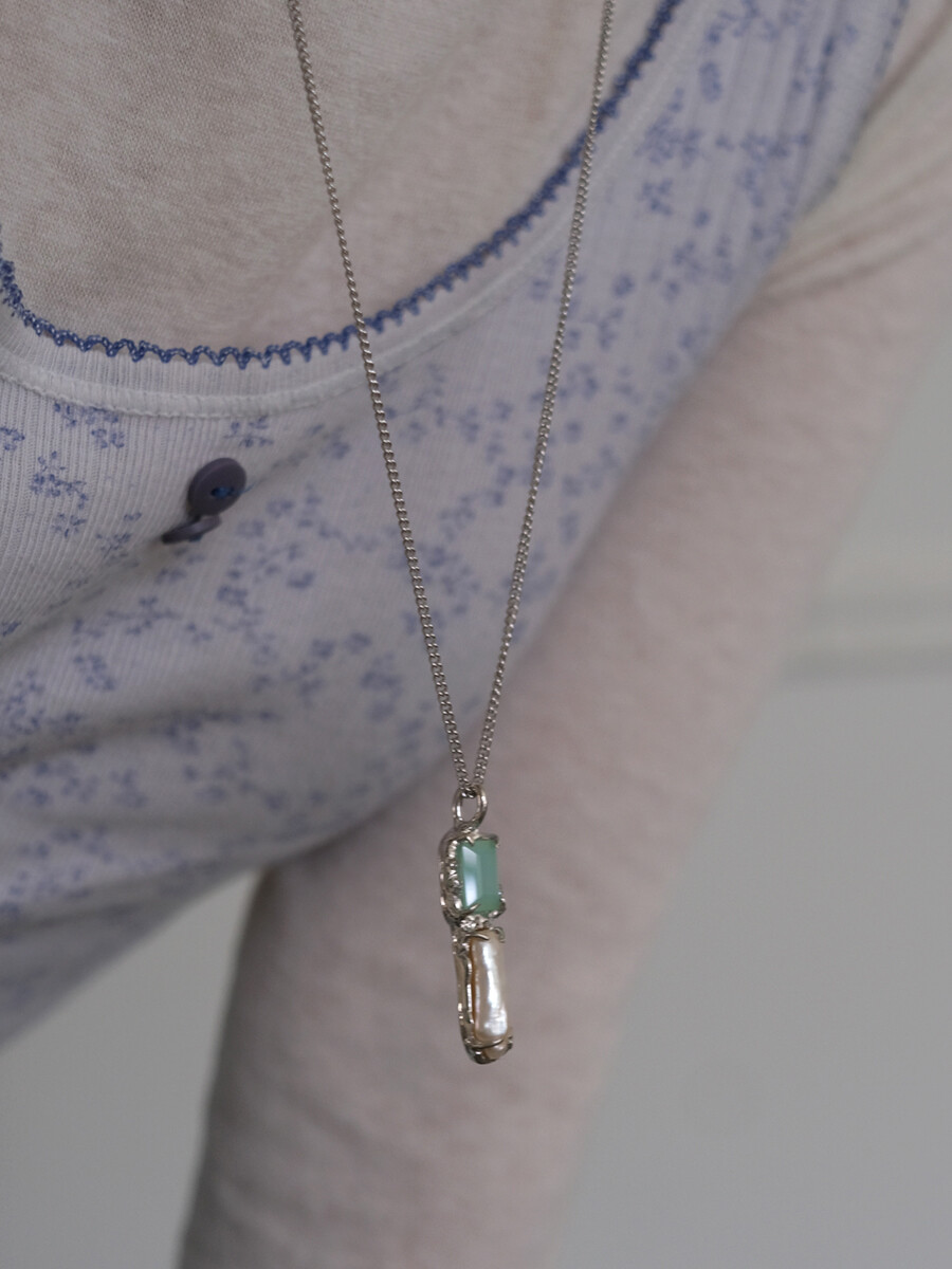 Chalcedony pearl key necklace