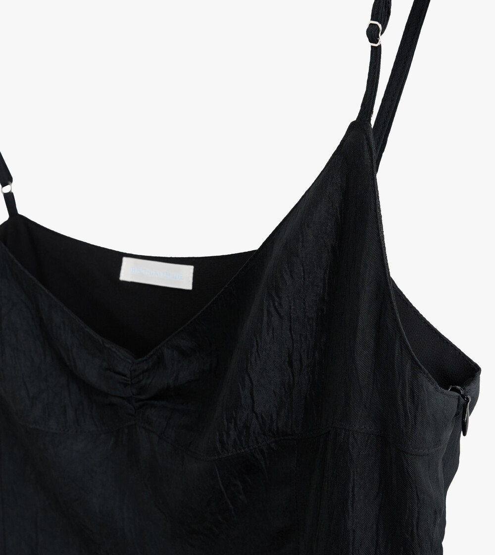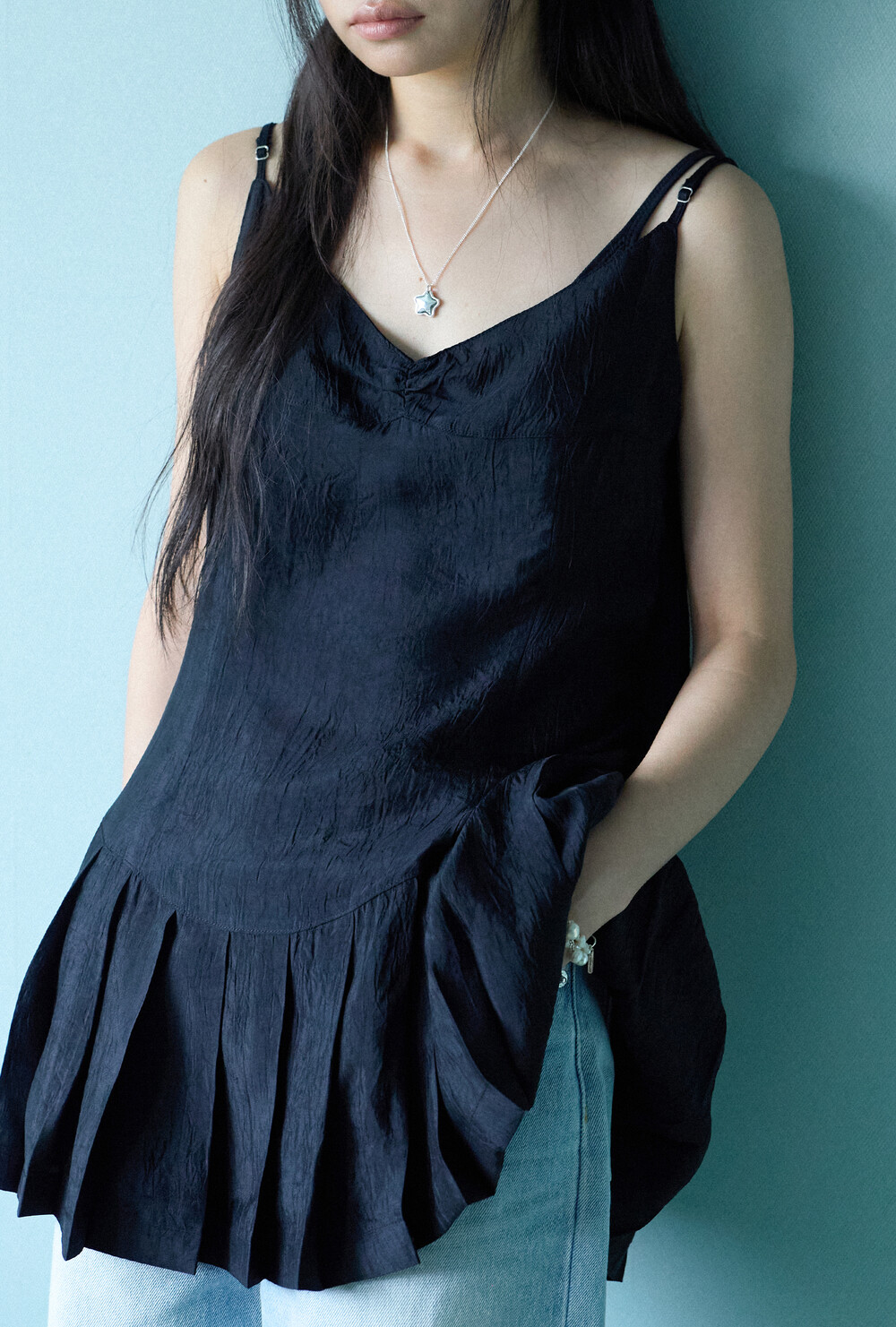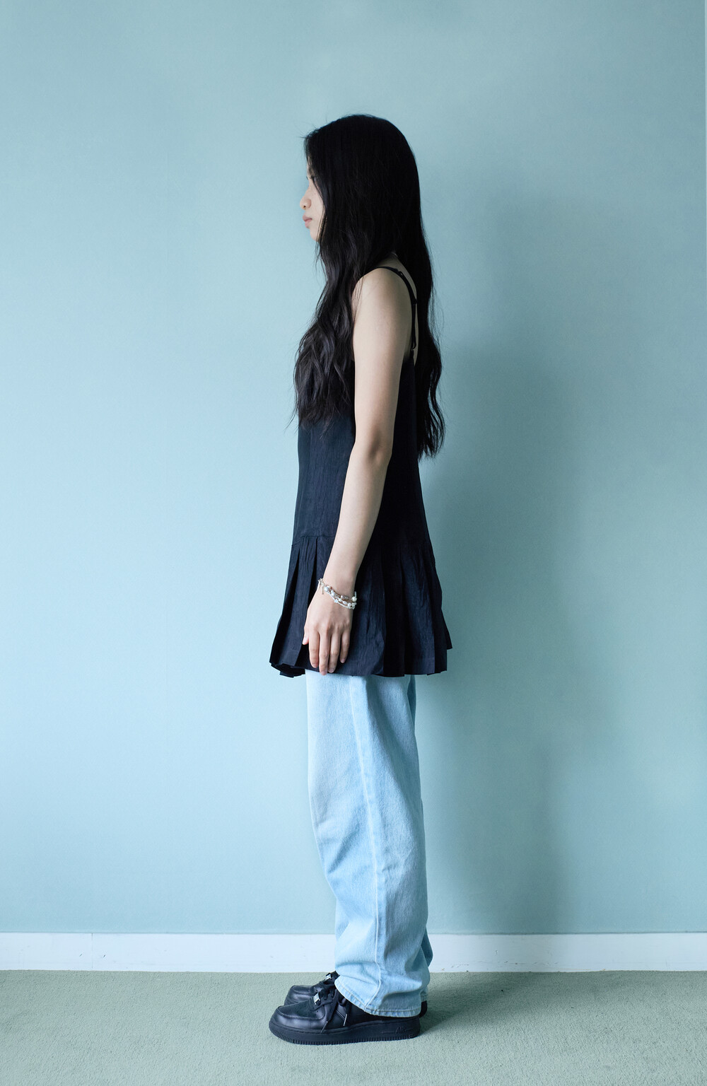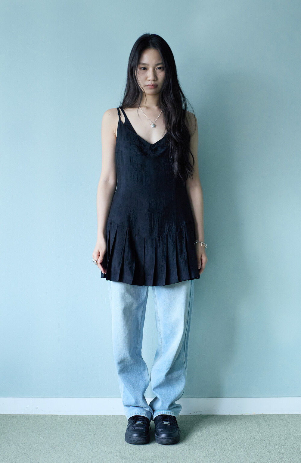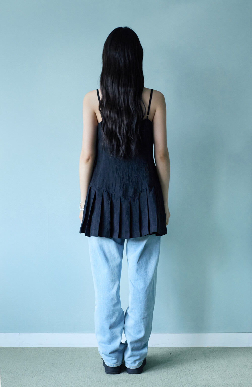 Size - chset(가슴) 41.5cm / waist(허리) 40cm / length(총장) 63cm / hem(밑단) 67cm / pleats length(플리츠 길이) 20cm / pleats width(플리츠 폭) 4cm / strap(어깨끈) 27cm ~48cm