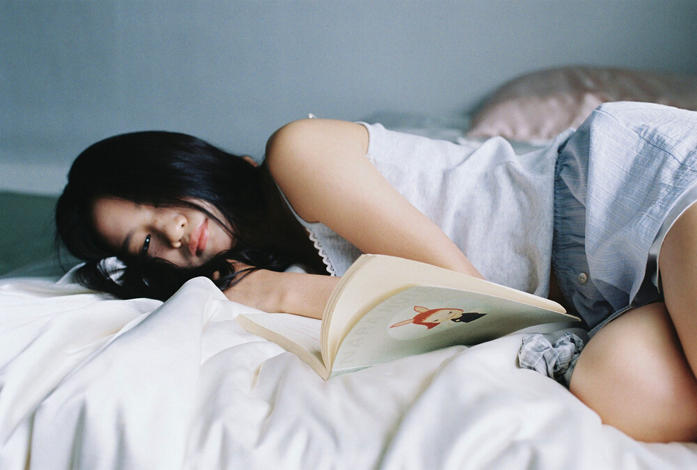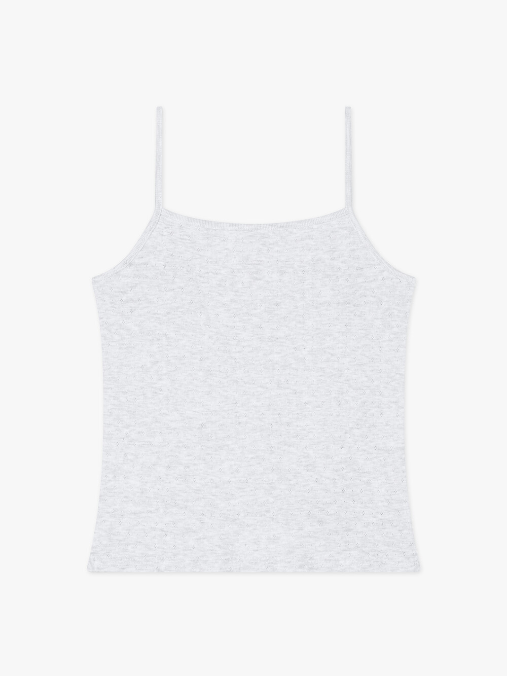 아일렛 자가드 원단 특유의 펀칭 디테일이 코지한 분위기를 연출하며,
