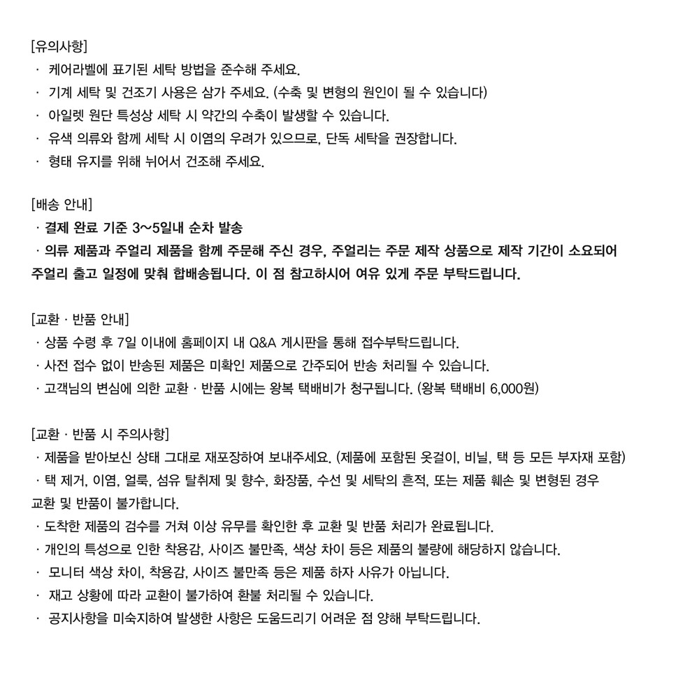 배송 일정 : 결제 완료 기준 3-5일내 순차 발송