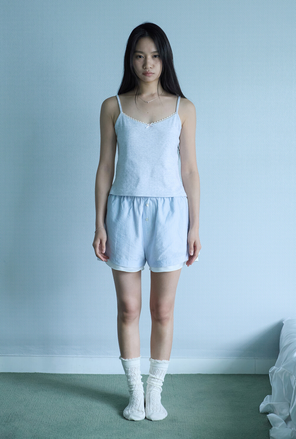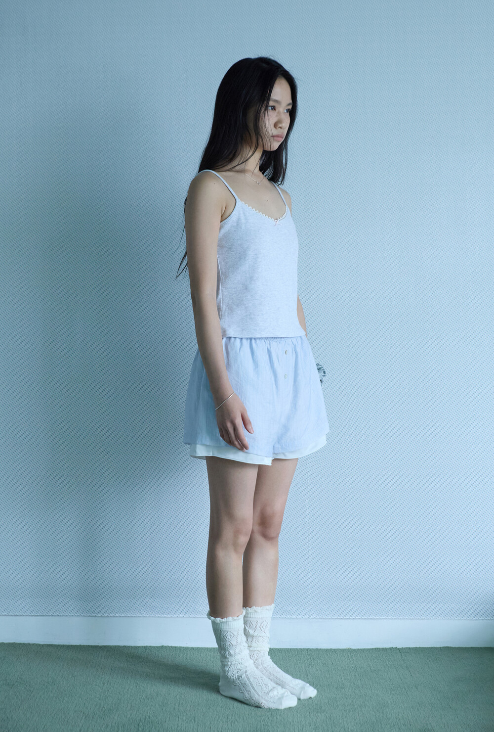 허리 밴딩과 여유 있는 로우 웨이스트 실루엣으로, 편안하면서도 감각적인 코지 룩을 연출할 수 있습니다. 또한, 사틴 소재를 안감으로 사용하여 비침 방지 효과와 함께 레이어드된 듯한 섬세한 디테일까지 더했습니다. 바캉스 룩은 물론, 데일리한 여름 코디에도 활용하기 좋은 아이템입니다.