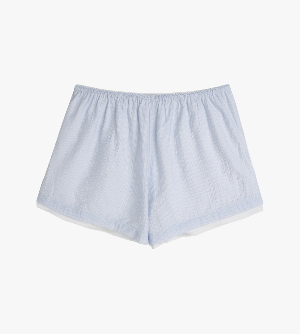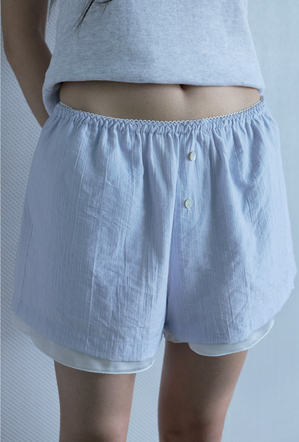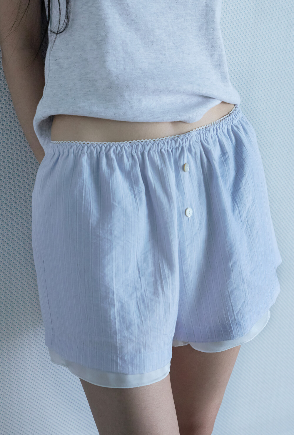 Shell - Rayon 86% / Nylon 14% Lining - Polyester 100% Size - waist(허리) 35cm / hip(엉덩이) 51cm / rise(밑위) 26cm / hem(밑단) 34cm / length(총장) 31cm 허리 밴딩 디테일로 26"~29" 까지 착용가능 (실측 사이즈는 측정자 및 측정 방법에 따라 1~3cm 가량 오차 범위가 생길 수 있습니다.)