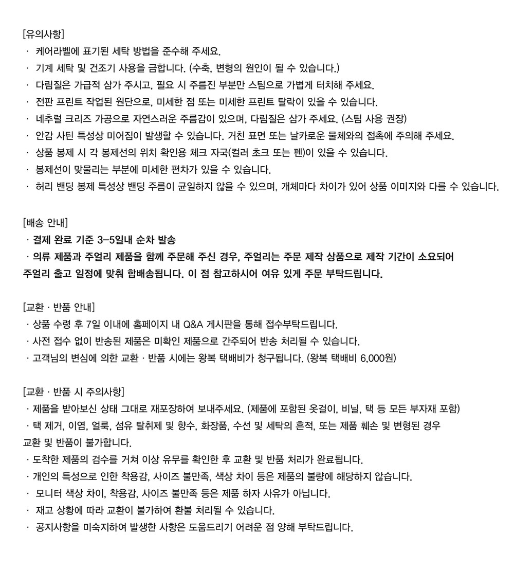 네추럴 크리즈 가공으로 자연스러운 주름감이 더해져, 세탁 후에도 형태감을 유지하며 편하게 착용하실 수 있습니다.